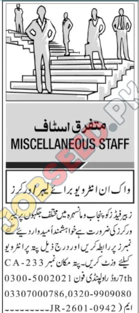 Zubair Feeds is hiring laborers and workers for multiple locations in Punjab and Mansehra. Walk-in interviews are scheduled at the Rawalpindi office. Apply now for latest job vacancies in the private sector.