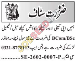 Lahore-Based Accountant & Office Staff Vacancies for B.Com/BSc Graduates