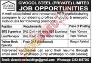 Civooool Steel (Private) Limited, a well-established and renowned PEB manufacturing company, is seeking energetic and skilled individuals to join their team. These positions offer opportunities to contribute to exciting projects and grow within a dynamic environment. Consider starting your career in a dynamic company.