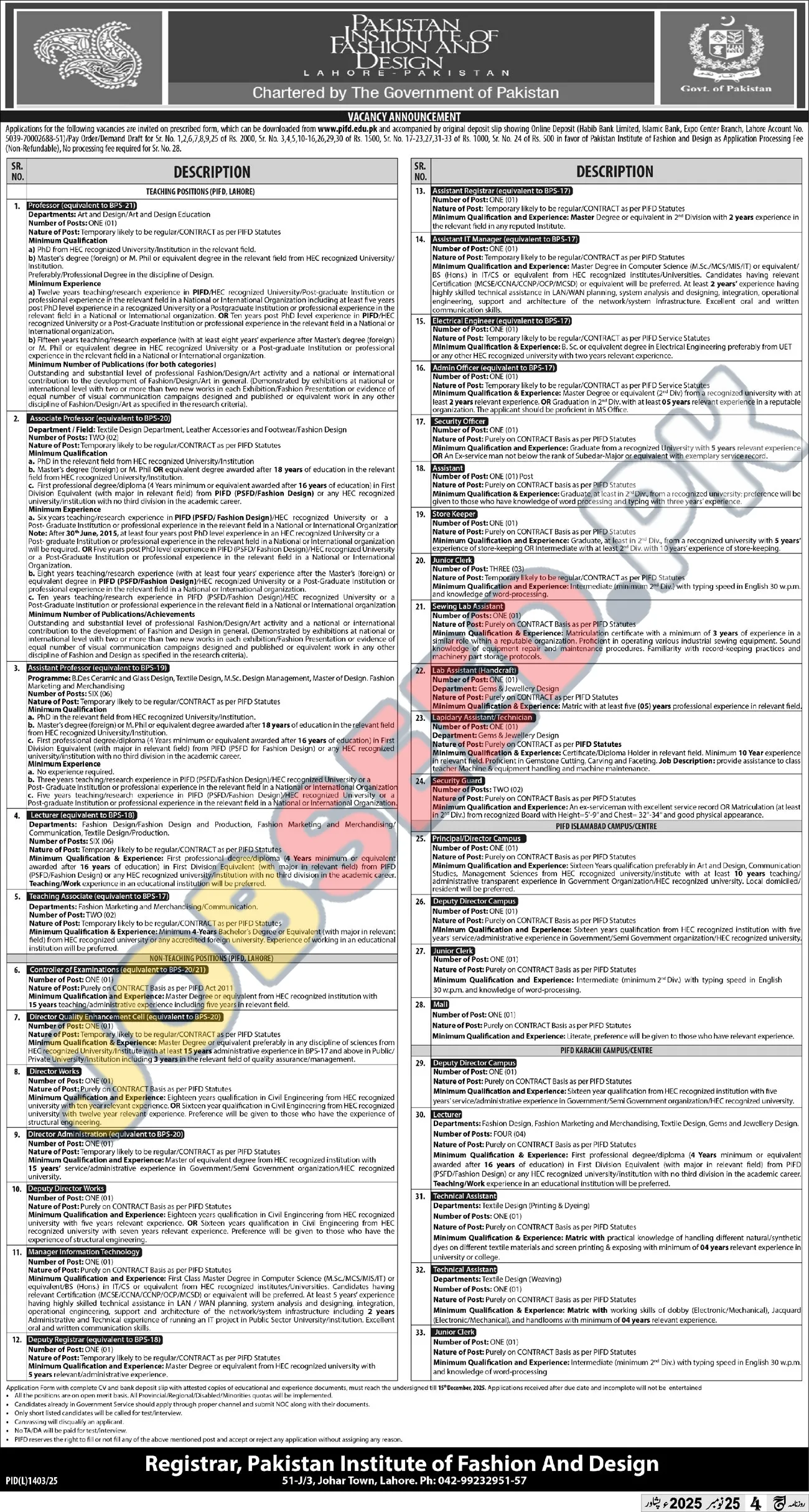 Interested and eligible candidates are encouraged to apply for the Lecturer positions at the Pakistan Institute of Fashion and Design (PIFD). Please follow the instructions below to ensure your application is properly submitted.