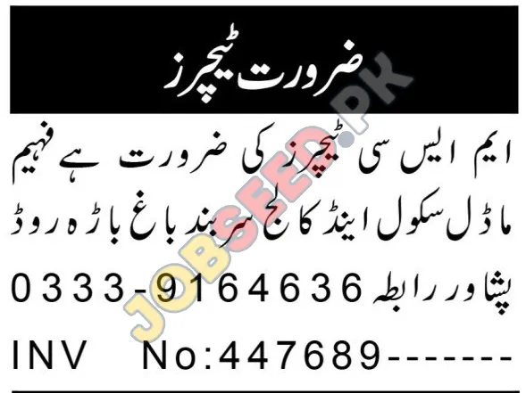 Fahim Model School & College is now recruiting in Peshawar Khyber Pakhtunkhwa. Apply for the position of Lecturer. The required qualification is Master. This role is within the Teaching industry. The application process commenced on 05 December, 2025 via Aaj Newspaper. Interested and eligible candidates must submit their applications before the deadline on 20 December, 2025. This is a prime opportunity to join a renowned organization. For a step-by-step application guide and full eligibility criteria, please see the official advertisement on https://www.jobseed.pk.