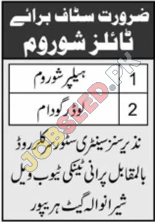 Nazeer Sons Sanitary Store is currently seeking dedicated and hardworking individuals to join their team. We have multiple openings at our Circular Road location, opposite Purani Tanki Tube Well, Sheranwala Gate, Haripur. If you are looking for a stable job with growth potential, we encourage you to apply.