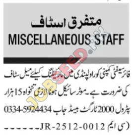 Fire Safety Trading is now recruiting in Rawalpindi. Apply for the position of Marketing Staff. The required qualification is Literate. This role is within the Marketing industry. The application process commenced on 02 December, 2025 via Jang Newspaper. Interested and eligible candidates must submit their applications before the deadline on 20 December, 2025. This is a prime opportunity to join a renowned organization. For a step-by-step application guide and full eligibility criteria, please see the official advertisement on https://www.jobseed.pk.