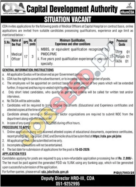 Government Job Openings: Medical Officers at Capital Development Authority