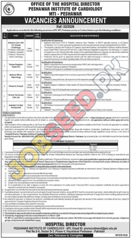| Job Hiring Organization: | Peshawar Institute of Cardiology - MTI |