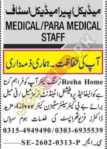 Reeha Home is seeking qualified professionals for Medical/Para Medical Staff positions. These job openings provide opportunities for experienced nurses, attendants, and other healthcare professionals. Successful candidates will benefit from these best career opportunities. The private sector company offers comprehensive home care services.
