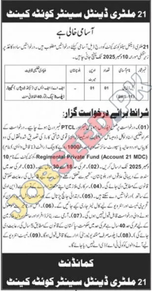 The 21 Military Dental Centre Quetta Cantt is seeking applications for the position of Lower Division Clerk (LDC). This is a great opportunity to contribute to the smooth functioning of a respected institution.