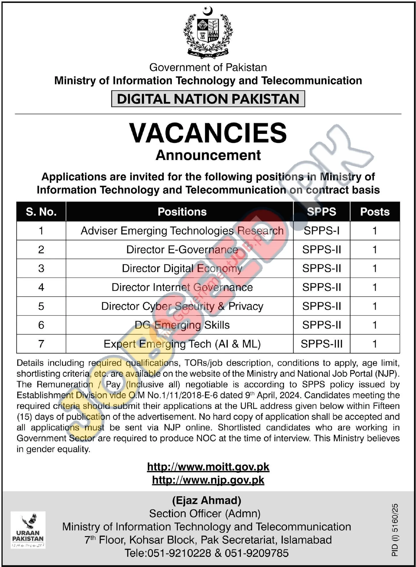 For further information: You can find more information about job details, qualifications, etc. on www.moitt.gov.pk and www.njp.gov.pk.