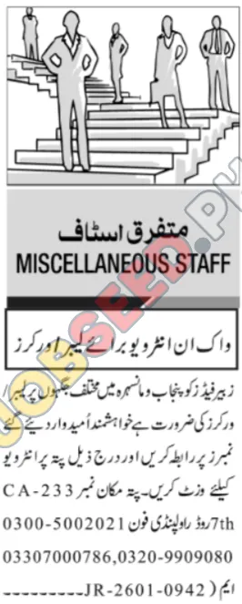 This advertisement seeks to fill miscellaneous staff and laborer roles within a private sector organization operating in Punjab, Pakistan. The company is looking for dedicated individuals to fill positions in various locations throughout the province. Explore these Staff vacancies Rawalpindi with competitive benefits. This presents a valuable opportunity for job seekers interested in entry-level positions and gaining practical experience in diverse operational settings. Explore these new job openings for a chance to build a rewarding career.
