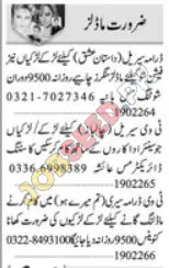 An media production company is actively seeking enthusiastic males and females for exciting roles in upcoming drama serials, TV commercials, and fashion shows. We are looking for talented individuals to join our team. Additionally, top companies hiring are available for qualified candidates. These positions offer great potential for growth, competitive compensation, and the chance to work in Pakistan's entertainment industry. Apply now!