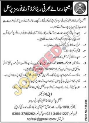 Join the team at National Police Foundation Security Services in Karachi, Sindh. They are seeking to hire a National Police Foundation Security Services. This is a Full-Time position. This career opportunity was advertised on 05 December, 2025 in Jang Newspaper. The last date to apply is 11 December, 2025. Don't miss this chance to advance your career with National Police Foundation Security Services. For more information and to apply online, visit https://www.jobseed.pk.