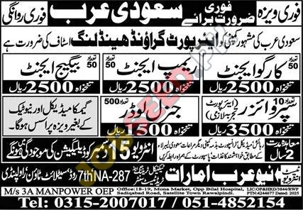 New Arab Emirates Technical Training & Trade Test Center, Riyadh Saudi Arabia Pakistan invites applications from eligible candidates for the post of Cargo Agent, Ramp Agent, Baggage Agent, General Loader and Supervisor as per advertisement of 13 December, 2025, published in Express Newspaper. Matric, Diploma educational qualification will be preferred.