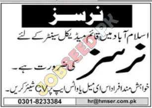 Medical Center is now recruiting in Islamabad. Apply for the position of Nurse. The required qualification is BSC. This role is within the Medical industry. A bachelor degree is preferred. The application process commenced on 25 November, 2025 via Jang Newspaper. Interested and eligible candidates must submit their applications before the deadline on 10 December, 2025. This is a prime opportunity to join a renowned organization. For a step-by-step application guide and full eligibility criteria, please see the official advertisement on https://www.jobseed.pk.