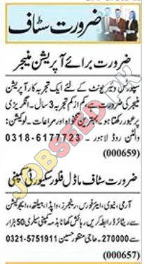 - Model Floor Security Company: Retired personnel from Army, Navy, Air Force, Rangers, WAPDA, and Health Education can contact the given number.