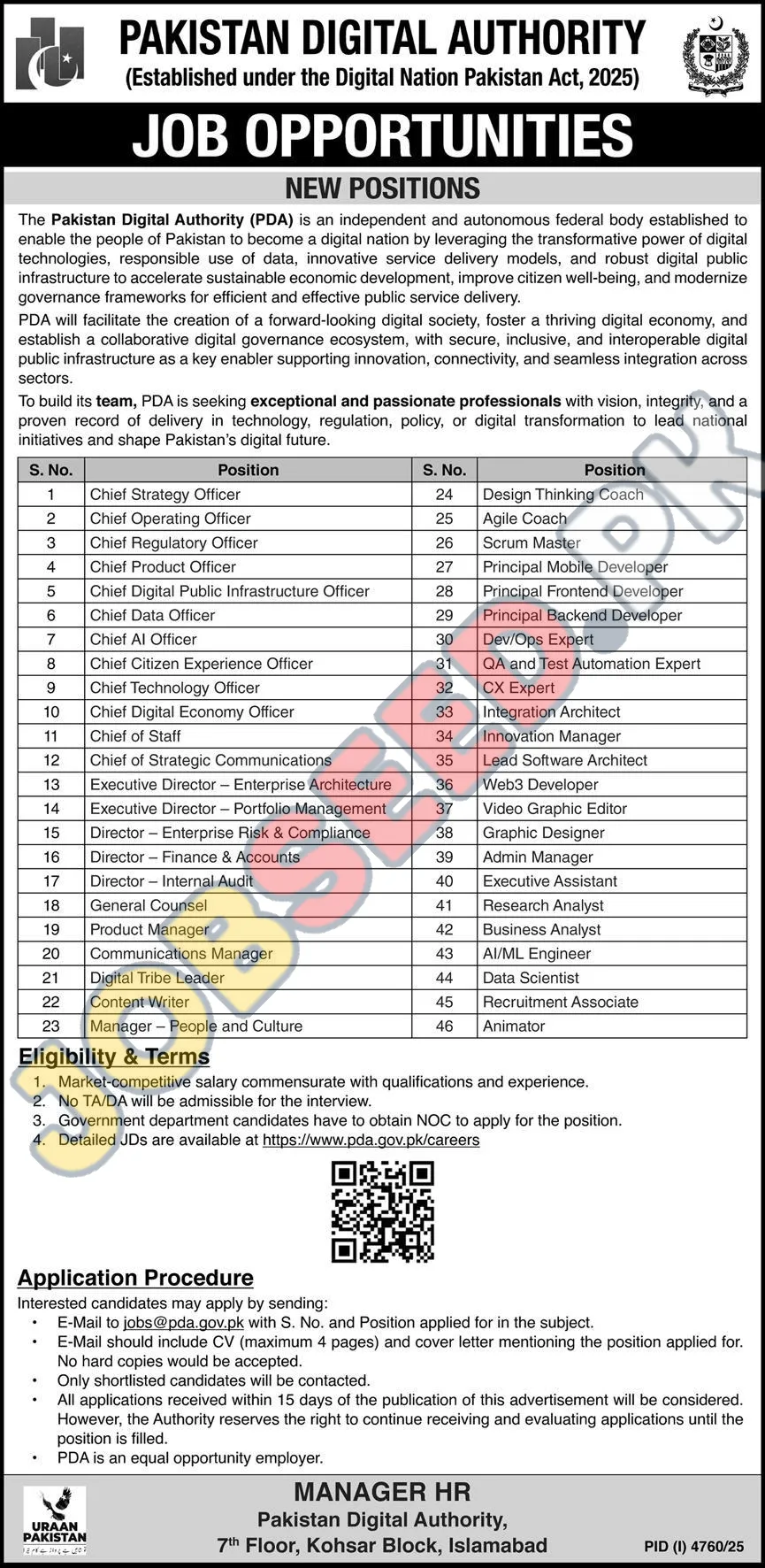 Apply at Pakistan Digital Authority PDA, latest jobs in Management department before closing date which is around 24 December, 2025 or as per closing date in newspaper ad. Read complete ad online to know how to apply on latest Pakistan Digital Authority PDA job opportunities. For Further details visit https://www.jobseed.pk.