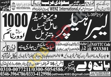 Pathway Manpower Services, Jeddah Saudi Arabia Pakistan invites applications from eligible candidates for the post of Labor Helper and Trade Visa as per advertisement of 16 December, 2025, published in Express Newspaper. Matric educational qualification will be preferred.