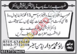 Omar Medicare Welfare Services is now recruiting in Multan. Apply for the position of Pediatrician Doctor. The required qualification is MBBS. This role is within the Medical industry. A associate degree is preferred. The application process commenced on 25 November, 2025 via Khabrain Newspaper. Interested and eligible candidates must submit their applications before the deadline on 10 December, 2025. This is a prime opportunity to join a renowned organization. For a step-by-step application guide and full eligibility criteria, please see the official advertisement on https://www.jobseed.pk.
