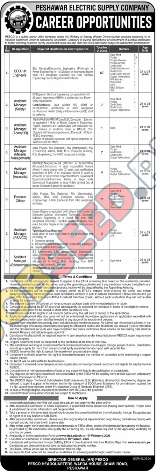 PESCO, a government-owned utility company, is opening doors for talented individuals to join its workforce. This advertisement highlights multiple job openings for engineers and management professionals, emphasizing the need for qualified candidates with relevant experience. Additionally, job vacancies 2026 are available for qualified candidates. The roles are offered on a contract basis, with compensation structured as a lump sum payment. Ideal candidates will find opportunities for career advancement within the public sector, contributing to the nation's energy infrastructure. This is a prime chance to secure a government job in Pakistan with a reputable organization.