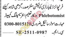 Laboratory is now recruiting in Lahore. Apply for the position of Phlebotomist. The required qualification is Intermediate. This role is within the Medical industry. The application process commenced on 01 December, 2025 via Jang Newspaper. Interested and eligible candidates must submit their applications before the deadline on 16 December, 2025. This is a prime opportunity to join a renowned organization. For a step-by-step application guide and full eligibility criteria, please see the official advertisement on https://www.jobseed.pk.