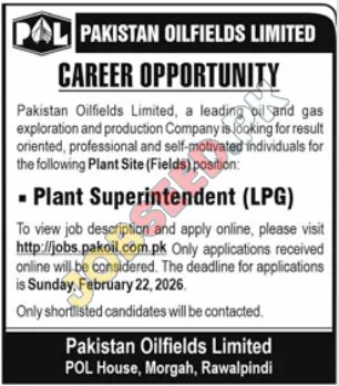 Pakistan Oilfields Limited, a private sector leader in oil and gas exploration, is seeking a skilled Plant Superintendent. Additionally, Oil and Gas employment opportunities are available for qualified candidates. This role involves overseeing plant operations, ensuring efficient production, and maintaining safety standards. With this career opportunity, join a team of dedicated professionals and be part of an organization committed to growth and innovation. The position offers a potential for professional development in the oil and gas industry. Interested candidates are encouraged to apply by the specified deadline.