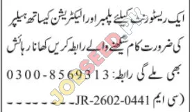 A well-known restaurant is looking for a Plumber and Electrician, offering a great initial step into the job industry. This role is perfect for those seeking to build their skills, contributing to a vibrant environment. Successful candidates will benefit from these high salary jobs. The company has announced the latest job vacancies and is inviting skilled professionals to apply and avail of this excellent career option.