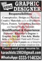 Private Company, Karachi Sindh Pakistan invites applications from eligible candidates for the post of Graphic Designer as per advertisement of 30 November, 2025, published in Jang Newspaper. Bachelor educational qualification will be preferred.