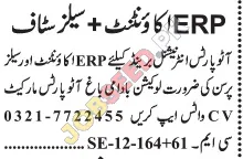 Private Company, Lahore Punjab Pakistan invites applications from eligible candidates for the post of ERP Accountant and Sales Staff as per advertisement of 08 December, 2025, published in Jang Newspaper. Bachelor educational qualification will be preferred.