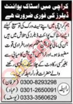 Private Group, Karachi Sindh Pakistan invites applications from eligible candidates for the post of Stock Point Dealers as per advertisement of 30 November, 2025, published in Jang Newspaper. Bachelor educational qualification will be preferred.