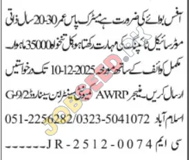 Join the team at Private Organization in Islamabad, Islamabad. They are seeking to hire a Private Organization. This is a Full-Time position. This career opportunity was advertised on 04 December, 2025 in Jang Newspaper. The last date to apply is 10 December, 2025. Don't miss this chance to advance your career with Private Organization. For more information and to apply online, visit https://www.jobseed.pk.