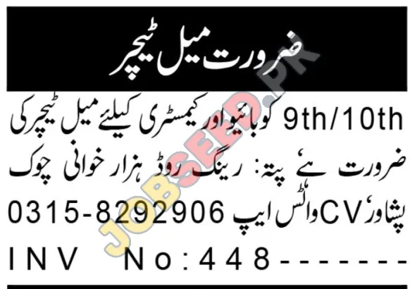 Private School, Peshawar Khyber Pakhtunkhwa KPK Pakistan invites applications from eligible candidates for the post of Teacher as per advertisement of 17 December, 2025, published in Aaj Newspaper. Bachelor educational qualification will be preferred.