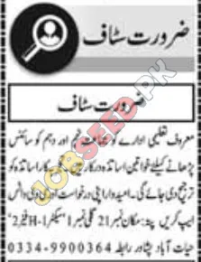 Private School, Gujar Khan invites applications from eligible candidates for the post of Teacher, Quran Teacher, Female Teacher, Arabic Teacher and English Teacher as per advertisement of 07 January, 2026, published in daily Jang. BA, Intermediate educational qualification will be preferred.