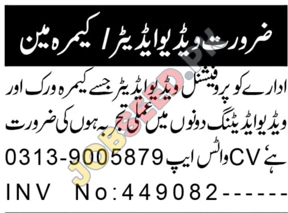 | 1 | Video Editor & Camera Operator | Diploma | Pakistan | Practical experience required |