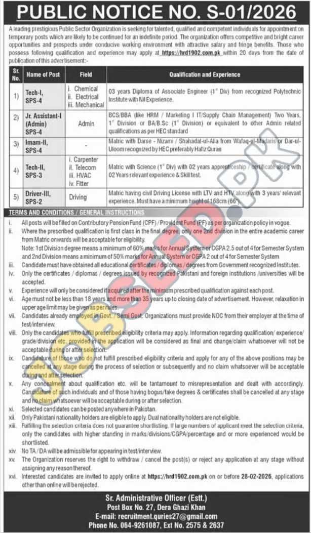 This Public Sector Organization is announcing multiple vacancies for skilled professionals. Additionally, best career opportunities are available for qualified candidates. The organization offers a stable career path with attractive salary packages and fringe benefits. Key roles include administrative support, technical expertise, and driving positions. Ideal candidates will possess the required qualifications and experience to contribute to the organization's mission. Explore these government employment opportunities for long-term career prospects.