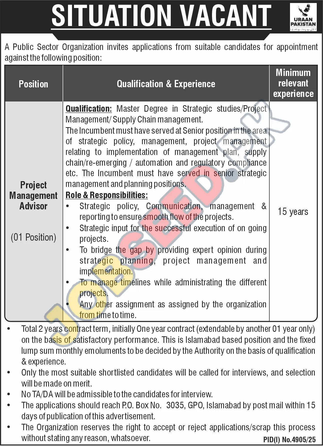 Apply at Public Sector Organization, latest jobs in Management department before closing date which is around 29 December, 2025 or as per closing date in newspaper ad. Read complete ad online to know how to apply on latest Public Sector Organization job opportunities. For Further details visit https://www.jobseed.pk.