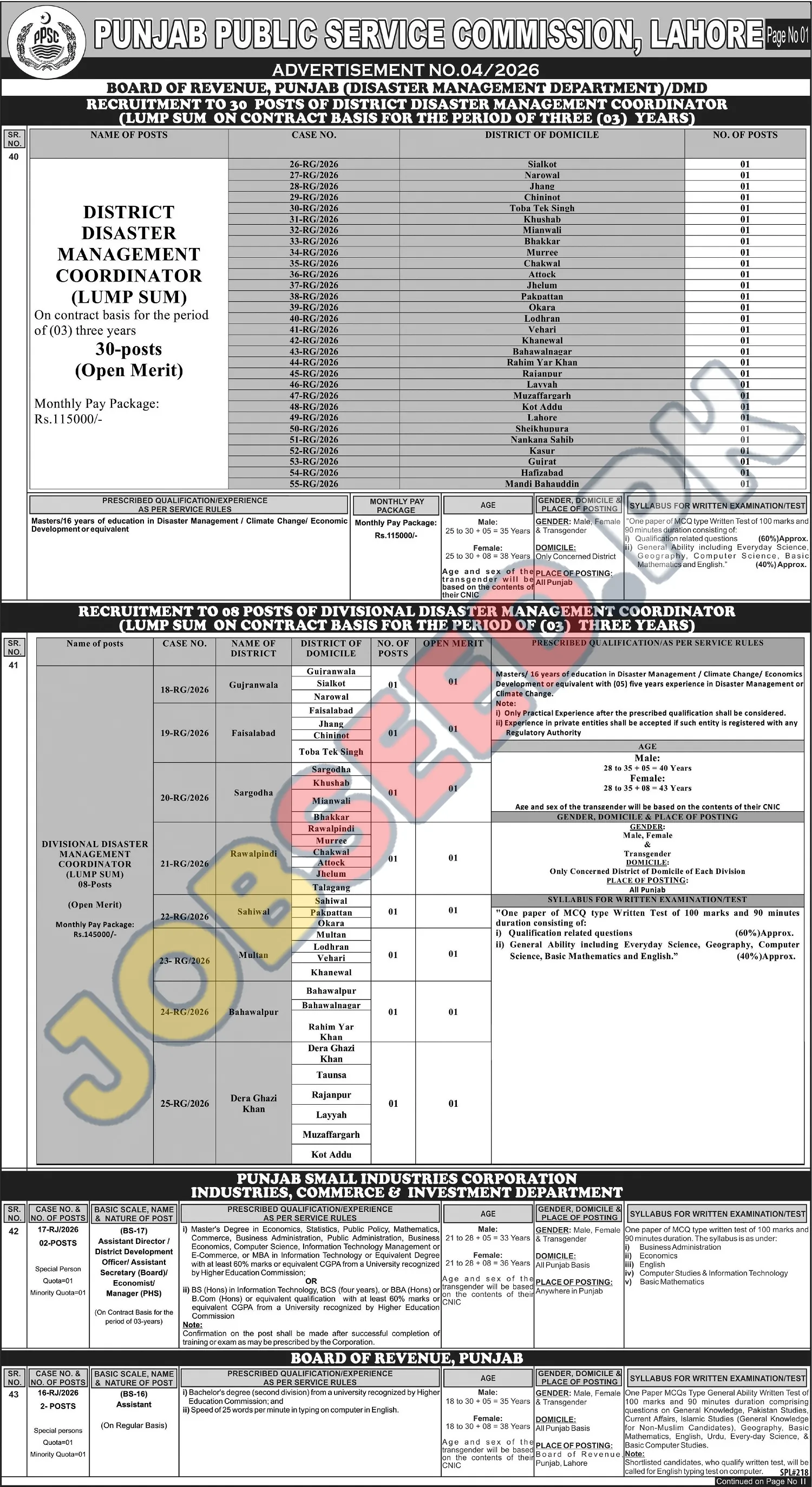 The Punjab Public Service Commission is seeking qualified professionals for District Disaster Management Coordinator positions within the Board of Revenue, Punjab. This government sector opportunity offers a competitive monthly package and the chance to contribute to disaster management and climate change initiatives. Apply now for a rewarding career in public service.
