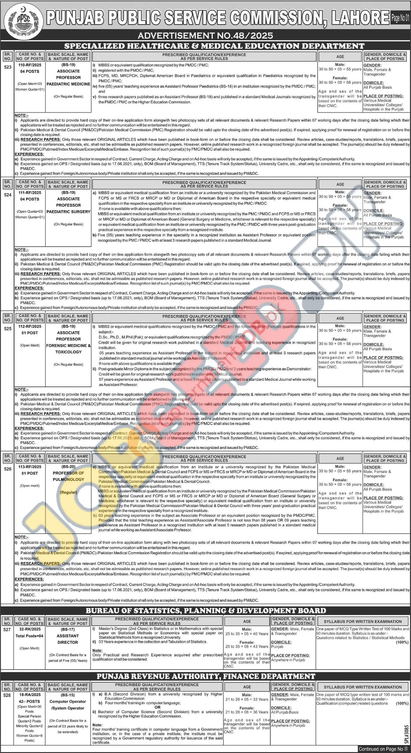 Join the team at Punjab Public Service Commission (PPSC) in Lahore, PB. They are seeking to hire 3 qualified individuals for the roles of Lecturer, Excise & Taxation Officer and Assistant Director Local Fund Audit. This is a Punjab Government position. This career opportunity was advertised on 16 December, 2025. The last date to apply is 05 January, 2026. Don't miss this chance to advance your career with Punjab Public Service Commission (PPSC). For more information and to apply online, visit https://www.jobseed.pk.