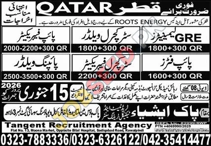 Tanget Recruitment Agency is facilitating immediate employment opportunities in Qatar for ROOTS ENERGY. We are looking for skilled individuals for a variety of roles to join our team that have competitive salaries and excellent benefits.