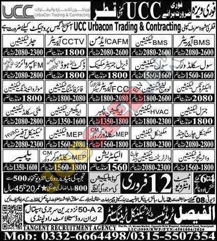 Qatar Urgent Hiring: Skilled Technicians Wanted by UCC Urbacon Trading & Contracting