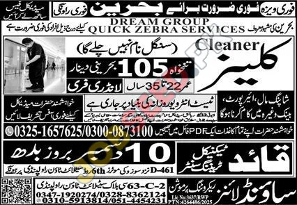 Quaid Technical Training Center, Bahrain Bahrain Pakistan invites applications from eligible candidates for the post of Cleaner as per advertisement of 04 December, 2025, published in Express Newspaper. Matric educational qualification will be preferred.