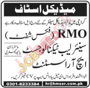 Career opportunity at Medical Center located in Karachi Sindh Pakistan for the position of RMO. This employment notice was announced on 16 November, 2025 through Jang Newspaper. Candidates possessing a MBBS degree are encouraged to submit their application.