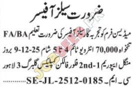 Medicine Firm is now recruiting in Lahore. Apply for the position of Sales Officer. The required qualification is BA. This role is within the Sales industry. The application process commenced on 06 December, 2025 via Jang Newspaper. Interested and eligible candidates must submit their applications before the deadline on 20 December, 2025. This is a prime opportunity to join a renowned organization. For a step-by-step application guide and full eligibility criteria, please see the official advertisement on https://www.jobseed.pk.
