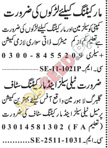 Career opportunity at Marketing Company located in Lahore Punjab Pakistan for the position of Salesman. This employment notice was announced on 01 December, 2025 through Jang Newspaper. Candidates possessing a Matric degree are encouraged to submit their application.