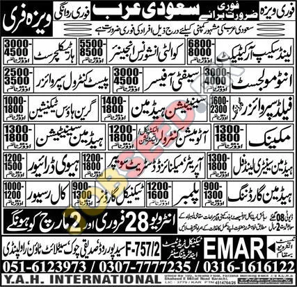 - Interview Location: Y.A.H. International Office, F-757/2, Saidpur Road, Sadiqabad Chowk, Rawalpindi.