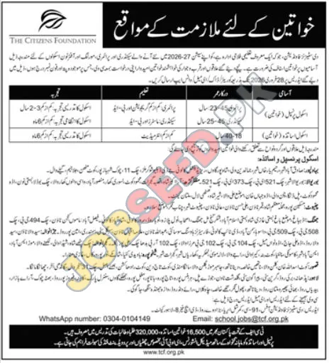 The Citizens Foundation (TCF) is a leading non-profit organization in Pakistan committed to providing quality education to underprivileged children. TCF is currently seeking applications from highly motivated and qualified female candidates for various positions in its schools across multiple cities. These career opportunities are available for the academic session 2026-27.