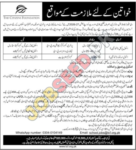 The Citizens Foundation (TCF), a leading non-profit organization in Pakistan, is actively recruiting female staff for various positions in its schools across Punjab. These full-time roles are available for the academic session 2026-27 and offer excellent career development opportunities within the education sector. TCF is committed to providing quality education and seeks dedicated professionals to join its team.