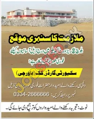 Security Guard and Cook Vacancies at Baloch Resort Kundalier