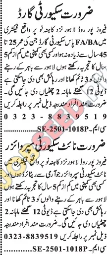 A leading private sector company has announced recruitment for Security Guards and Night Security Supervisors at its factory near Kahna Nau, Lahore. These openings are perfect if you are looking for job openings with great benefits, competitive salary, and potential for professional growth. Interested candidates should apply according to the instructions listed below.