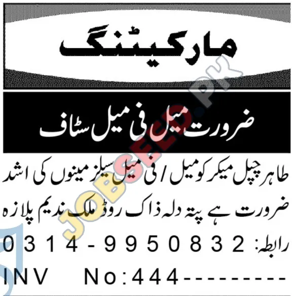 Tahir Chappal Maker is seeking dedicated and motivated sales staff (male/female) to join their team. If you have a passion for sales and are looking for a challenging opportunity, we encourage you to apply. Located at Dulla Zak Road, Malik Nadeem Plaza, this position offers a chance to contribute to a growing business.