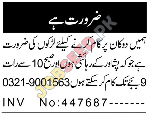 Apply at Shop, latest jobs in Business Staff department before closing date which is around 20 December, 2025 or as per closing date in newspaper ad. Read complete ad online to know how to apply on latest Shop job opportunities. For Further details visit https://www.jobseed.pk.