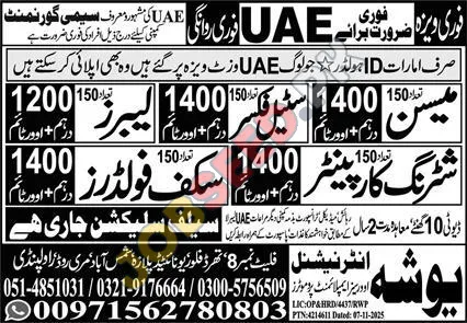 Career opportunity at Yosha International Overseas Employment Promoters located in Abu Dhabi UAE Pakistan for the position of Shuttering Carpenter. This employment notice was announced on 04 December, 2025 through Express Newspaper. Candidates possessing a Matric degree are encouraged to submit their application.